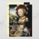 Uvas vermelhas curvas com fita azul, videiras de uva, folhas de outono verdes.Linda menina loira com belos vestidos e joias de ouro com chapéu vermelho e penas brancas e paisagem do lago em fundo pelo pintor alemão Lucas Cranach, Colagem digital clássica, elegante estilo de vintagem .com pinturas flamenga e alemã,.Esta clássica design Renascentista é perfeito para casamentos de outono, comemorações de aniversário, 16 aniversários de doce, salvar a data, agradecer cartões, chás de fraldas, festas de feriado, reuniões familiares. ele pode ser usado também como convites comerciais para nutricionistas, dietistas, caterães, serviços de comida, preparação ou restauração, catering, indústrias de vinho.