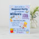 Um convite de festa de aniversário de pyjama, personalize os detalhes seguindo as instruções para alterar os detalhes pessoais.