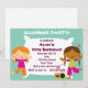Este convite de festa de pyjamas apresenta duas meninas vestindo pijamas, uma almofada branca grande e texto personalizável.