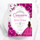 Convite Festa de Quince Anos Floral Rosa Fúcsia Prata