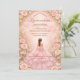 Este elegante design de quinceañera apresenta um fundo de aquarela rosa suave emoldurado por rosas românticas, flores delicadas e sotaques dourados sutis, com uma ilustração de vestido graciosa criando uma atmosfera sonhadora e refinada. A paleta de tons pastéis rosa e os detalhes florais dão ao design um toque luxuoso, mas jovem, tornando-o perfeito para uma celebração clássica de quince anos com uma estética romântica inspirada em jardins.