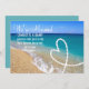 Convite ideal para quem casou no exterior e quer celebrar com amigos e familiares em casa com uma vista ensolarada da praia, contas brancas bonitas em forma de coração e corações de amor vermelhos doces.