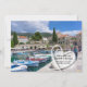 Convite ideal para casais que se casam na Croácia e querem celebrar seu casamento com amigos e familiares em sua terra natal ao retornarem. Linda imagem de barcos no porto e céu azul em forma de coração