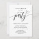 Anuncie e compartilhe seu felizes para sempre com estilo com nosso design de tema preto e branco moderno (Festa felizes para sempre) cartão de convite para jantar almoço brunch recepção de celebração de casamento fuga. É ideal para casais que decidiram celebrar seu melhor dia. Com seu design sofisticado e divertido, este convite certamente dará o tom para um evento inesquecível. O cartão de convite apresenta um tema de design de roteiro moderno e minimalista, adicionando um toque de elegância atemporal à sua celebração. Criado por TeeshaDerrick