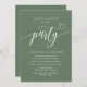 Anuncie e compartilhe seu final feliz com estilo com o nosso design de tema verde-sage moderno (Festa de final feliz) para cartão de convite de casamento, fuga, celebração, recepção, jantar, almoço, brunch. É ideal para casais que decidiram celebrar o seu melhor dia. Com um design sofisticado e ainda lúdico, este convite certamente estabelecerá o tom para um evento inesquecível. O cartão de convite apresenta um tema de design de letra moderno e minimalista, adicionando um toque de elegância atemporal à sua celebração. Projetado por TeeshaDerrick