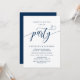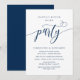 Anuncie e compartilhe seu felizes para sempre com estilo com nosso design de tema azul marinho moderno (Festa felizes para sempre) cartão de convite para jantar almoço brunch recepção de celebração de casamento fuga. É ideal para casais que decidiram celebrar seu melhor dia. Com seu design sofisticado e divertido, este convite certamente dará o tom para um evento inesquecível. O cartão de convite apresenta um tema de design de roteiro moderno e minimalista, adicionando um toque de elegância atemporal à sua celebração. Criado por TeeshaDerrick
