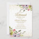 Flor cor-de-rosa e amarelo elegante e colorido com brilho dourado num convite de festas branco de celebração da aposentadoria. Entre em contato conosco para obter ajuda com a personalização ou para solicitar produtos correspondentes.