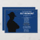 Convite à aposentadoria azul e Dourada para um Patrolman da Rodovia Aposentável. Design tem uma silhueta de um policial estatal e um confete de ouro.Adicione anos de serviço e outros detalhes importantes ao seu convite.