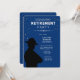 Convite à aposentadoria azul e Dourada para um Patrolman da Rodovia Aposentável. Design tem uma silhueta de um policial estadual em um cartão redondo. Adicionar anos de serviço e outros detalhes importantes ao seu convite.