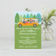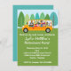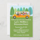 Venha celebrar a última parada do motorista de ônibus e chute sua aposentadoria! Este design branco bonito apresenta um ônibus escolar amarelo com corujas. Árvores verdes e azuis alinham o fundo. Este convite tem um tema de primavera. Personalize este convite para a festa de aposentadoria de um motorista de ônibus. Há também muito espaço no verso para mais informações, fotos, uma breve descrição de seus anos de serviço dedicado e comprometido. Este convite também funciona bem para uma aposentadoria de professores, ou para o aniversário de uma criança com um tema de ônibus.