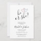 Um convite de revelação de gênero moderno e minimalista com corações azuis e rosas desenhados à mão e tipografia estilosa. Criado por Thisisnotme©