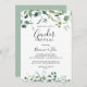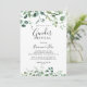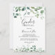 Esse roteiro de caligrafia, gênero foliar, revela convite de festas é perfeito para um gênero de bebê moderno. O design apresenta galhos e folhas botânicas elegantes e desenhadas a aquarela, desenhadas à mão, em belos buquês e padrões geométricos.