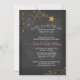 Um raio-x-chalé, pequeno astro cintilante, gênero com tema, revela convite. Apresentando estrelas douradas falsas e sotaques de cor rosa e azul macio.