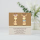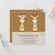 Convites de revelação do sexo de girafa fofa para menino e menina. Este convite de festa de revelação do sexo do bebê marrom e bege tem uma girafa menina e uma girafa menino em um fundo marrom e bege.