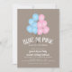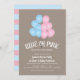 Este gênero simplista revela um convite de festas que apresenta um buquê de balão bonito com balões meio rosa e meio azuis. O plano de fundo é neutro em relação ao texto branco para os detalhes do convite.