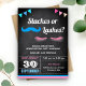 Entusiasmem seus hóspedes com este gênero fofo que revela um convite com bigode azul e pestanas cor-de-rosa com tipografia moderna contra um fundo de quadro. Basta adicionar os detalhes do seu evento neste modelo fácil de usar para torná-lo um convite de tipo único.