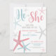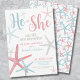 Rosa Moderno e Azul Ele ou Ela Verão Praia Gênero Revelam Convite de festas. Bem-vindos amigos e familiares dos pais a um verão ou praia... ... ... ... ... ... ... .... .... .... .... .... .... ... ... .... .... .... .... .... .... ............................................................................................................... Um padrão de praia de aquarela giro e tenra, gabando uma mistura de tons cor-de-rosa e azuis ou lacrimejantes que lembra um paraíso na casa de praia. Abraçar a essência do verão com esta design de inspiração costeira, adornada com estrelas do mar caprichosas que exuam um charme náutico. Disponível como um convite impresso ou como um convite digital para download que você pode enviar por e-mail ou que foi impresso localmente!