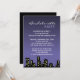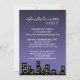 O convite à Festa de solteira da paisagem urbana apresenta uma típica paisagem urbana de como a cidade se parece com as silhuetas de arranha-céus altos iluminadas à noite. Ideal para solteiros ou festas de solteira de noites de pré-casamento. © Manhã 6
