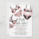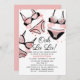 Lingerie Panty Festa de solteira Glitter Invtions apresenta sutiãs e calcinhas elegantes, cor-de-rosa e pretas, com o texto "Ooh La!" no moderno roteiro de caligrafia preta, com a sua lingerie personalizada, a sua festa de calça ou as informações do chá de panela abaixo. Personalize editando o texto nas caixas de texto fornecidas. Criado por ©Evco Studio www.zazzle.com/store/evcostudio