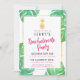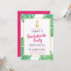 Convites modernos, ousados, cor-de-rosa quente e festa de solteira dourada com acentos cor-de-rosa-quente, abacaxi de folha de ouro falso e folhas tropicais de cor-de-água à volta da borda.