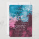 Este belo convite para o casamento mostra uma mistura harmoniosa de azul empoeirado, borrado e matizes cor-de-rosa num design de tinta a álcool a cores-d'água cativante. Os padrões giratórios criam um efeito gradiente, fazendo uma transição sem falhas de azul macio e poeirento no topo para a burgundy profunda no fundo, intercalada com delicadas listras brancas. A textura marmoreada fornece uma canvas luxuosa e artística para seus detalhes de casamento, definindo o tom para um evento inesquecível.