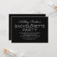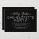 Convites de festa de solteira de casamento modernos e na moda apresentam um título impressionante de cinza de platina que é personalizado com o nome da noiva e um anel de noivado de diamante. A cor de fundo é preta. Personalize o texto com os detalhes da noite de saída das suas meninas.