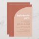 Convite para festa de solteira. Minimalista, porém impressionante: adote este design tipográfico ligeiramente retrorreflector para a sua papelaria de casamento, com um design de arco moderno e terracotta e cores laranja queimadas. Texto, cores e fundo totalmente personalizáveis.