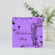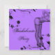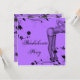 Uma noite de despedida de solteira de diversão com um alfinete de lavanda em meias de rede de pesca e saltos altos cercados por flores e vinhas pretas. Uma fita preta e um arco no verso.