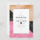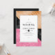 Padrões de animais de folha cor-de-rosa e dourada, mármore e sequências, convite de festa de solteira.
