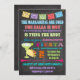 Bonito e colorido Convites à Festa de solteira Fiesta mexicana com faixas brilhantes, tipografia divertida, uma grande margarita e taco num fundo de quadro de chanfro. Então pegue uma bebida fria e salsa quente com este convite incrível. Ilustração desenhada à mão por McBooboo. Por favor, entre em contato comigo com qualquer problema ou algo personalizado em tkatz@me.com ou se precisar que eu faça o convite inteiro para você!