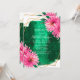 Uma ilustração delicada de aquarela, com uma estrutura geométrica dourada contra um fundo verde esmeralda. O quadro é adornado com crisântemos rosa-quente vibrantes colocados ao longo das bordas externas. Todo o design tem textura aquosa macia, misturando elegância com um toque floral natural.