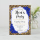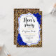 Design elegante azul real e branco com brilho falso dourado e impressão de leopardo. Apresenta rosas azuis safira e fonte de letra trendy. Perfeito para uma festa elegante. Mensagem-me se precisar de mais personalização.