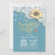Modelo de festa de solteira de de de Placa de Chá de panela / Girassóis Elegantes, Quadro de rendas Vintage e Luzes de String Chic no Plano de Fundo Azul / Turquesa / Tiffany. Um Design Perfeito Para O Seu Grande Dia! Todo Estilo De Texto, Cores, Tamanhos Podem Ser Modificados Para Ajustado Das Suas Necessidades.