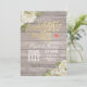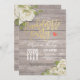 Modelo de Cartão de Convite de festa de solteira - Roteiro de Folha Ouro Falso com Rosas Brancas Floral e Luzes de Cordas no Fundo Russo de Madeira. Um Design Perfeito Para O Seu Grande Dia! Todo Estilo De Texto, Cores, Tamanhos Podem Ser Modificados Para Ajustado Das Suas Necessidades.