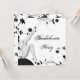 Uma noite de despedida de solteira com um alfinete preto-e-branco em mini vestido e saltos altos cercados por florais e vinhas pretas. Uma fita preta e um arco no verso.