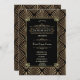 Design Glamouroso no estilo Great Gatsby Art Deco. Apresenta estilo Art Deco, forma de folha de ouro falso e ornamentos, em um fundo preto. Use a ferramenta Personalizar para adicionar suas informações. Para itens correspondentes, visite minha Coleção de Estilo Gatsby Preto/Branco Art Deco dos anos 20.