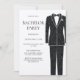 Convite de Festa de Solteiro Brilho Champanhe Terno Preto e Gravata