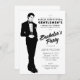Convite de festa de solteiro preto e branco.