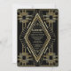 Design de cartão elegante e vintage com um estilo art déco sofisticado dourado falso, ornamentos de flor-de-lis real. Use a ferramenta Personalizar para adicionar suas informações. Para itens correspondentes, visite minha Coleção Romântica Grande Gatsby Dourada e Preta.