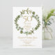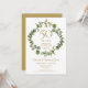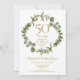 Com uma elegante guirlanda de folhagem florestal, este convite de festa surpresa de aniversário de 50 anos de casamento botânico chic pode ser personalizado com as suas informações especiais de aniversário de ouro. O verso apresenta uma guirlanda correspondente que enquadra as datas de aniversário em texto branco elegante em um fundo dourado. Concebido por Thisisnotme