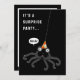 Convites de festas de surpresa criativos de outubro ou Dia das Bruxas apresentando uma aranha engraçada.