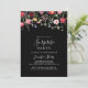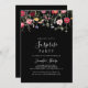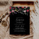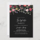 Este convite de festas de surpresa multicolorido de flores silvestres é perfeito para um aniversário moderno, aposentadoria ou qualquer festa surpresa. O design apresenta uma variedade multicolorido de flores silvestres cor-de-rosa, pinceladas, roxas, amarelas, brancas, violetas, vermelhas e burgundy em fundo preto.