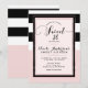 Convites de Festa de Sweet 16 Moderno com Listras Rosa, Preto e Branco.