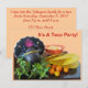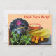 Este design é um convite para uma festa de taco. Para alterar o texto, clique no botão "Personalizar", depois no botão "Editar Texto" no canto inferior esquerdo. Você também pode alterar o tipo e tamanho da fonte, junto com a cor. Se você não gostar das alterações, clique no botão "Editar Texto" e continue fazendo alterações até gostar dos resultados. Você também pode clicar na seta para trás no canto superior esquerdo da tela.