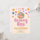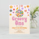 Este é um Convite de festas de Hippie Groovy Um primeiro aniversario Vintage Disco Ball, de 70 anos.