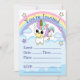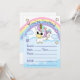 Festa de Unicórnio convida para qualquer ocasião. Adorável unicórnio bebê saltando sobre nuvens azuis na frente de um arco-íris de cores pastéis, nuvens e estrelas. Use o convite como está ou substitua o texto em qualquer um dos modelos.