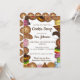 O design do convite apresenta uma ilustração original de marcador de deliciosos biscoitos frescos assados. Ótimo para uma venda de bolos, troca de cookies ou outra celebração. Basta personalizar com as informações do seu evento.