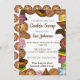 O design do convite apresenta uma ilustração original de marcador de deliciosos biscoitos frescos assados. Ótimo para uma venda de bolos, troca de cookies ou outra celebração. Basta personalizar com as informações do seu evento.