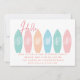 Viva, o verão chegou. A escola está fechada para o verão. Celebre o último dia de aula com este convite fofo com pranchas de surf pastel. Termine o ano letivo com uma divertida festa na piscina com todos os seus amigos