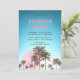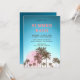 Celebre uma temporada de festas de verão com este encantador design desenhado à mão, apresentando palmeiras balançando contra uma lua cor-de-rosa e um fundo azul aqua. O verso apresenta um tom azul complementar que combina com o design. Perfeito para qualquer festa de praia ou piscina!